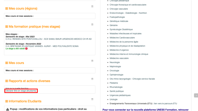 Tout d’abord, il faut te rendre sur le site SIDES via ce lien, puis te connecter à ton compte étudiant. Puis aller dans la rubrique « rapport et actions diverses » cliquer sur « Déclarer être en stage (étudiant) »